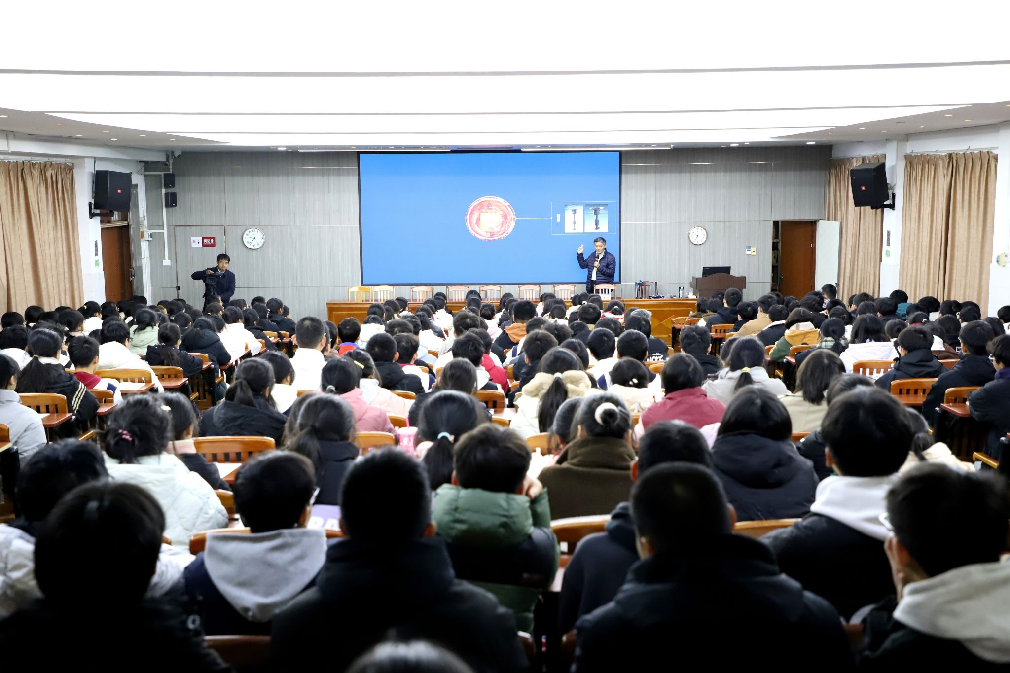 12月7日,余隋怀教授应邀赴融水中学,通过现场和视频直播结合的方式,为高一高二年级2300余名学生,以及慕名而来的融水干部、市民等做了一场近3小时的精彩讲座。讲座现场座无虚席,气氛热烈,余教授以其独特的理工科视角,深入浅出地解读了中华造物之美,引领听众跨越时空,体验了一场深度的中国古代文化之旅。现场学生互动频繁,掌声雷动,反响空前,余教授的精彩讲述不仅激发了学生们的文化自信,也加深了大家对传统文化传承与创新的认识。