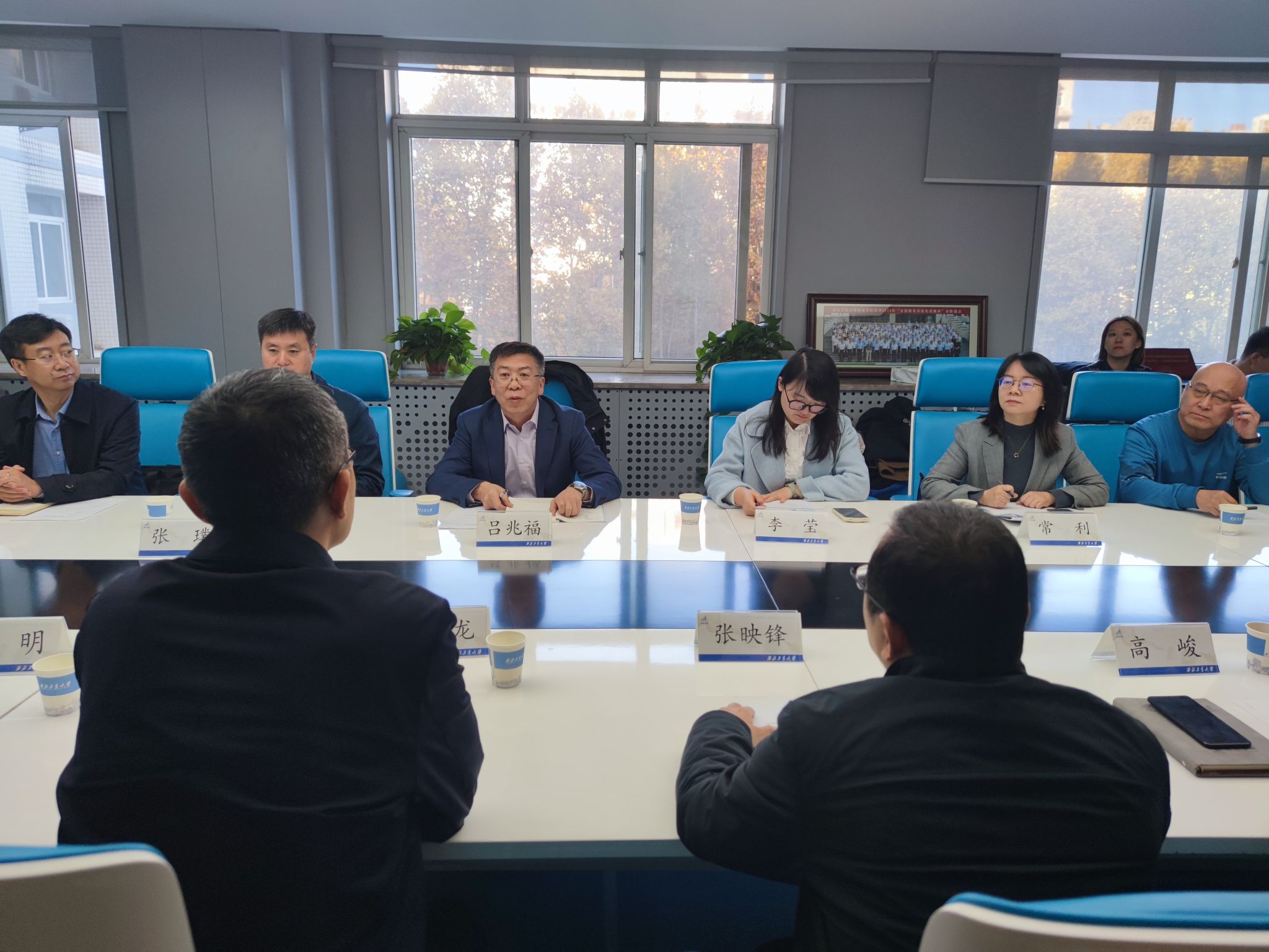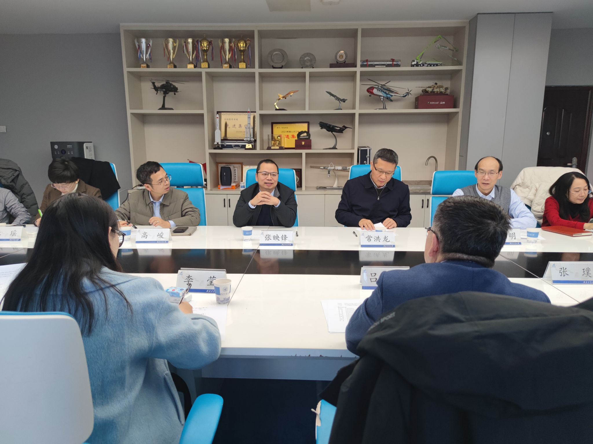 院长常洪龙、党委书记张映峰、副院长罗明、党委副书记高峻,材料学院副院长罗皎,网络空间安全学院党委副书记杜瑶,以及多位国家级青年人才教师共同参加了本次交流活动。