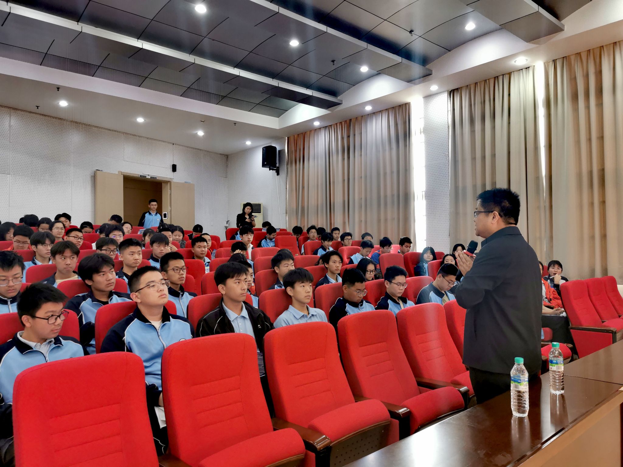 常洪龙院长主讲的《走进中国飞行器总制造师摇篮》专题科普讲座将活动推向高潮。结合飞机制造、航空发动机制造、芯片制造等重大工程案例,常洪龙院长以“总师视角”诠释了西工大人“顶天立地”的科研品格,让学子们关注到了科技发展的前沿,感受到了现代科技的魅力,激发了少年们科技报国的信念。这场融贯大国重器与青春梦想的思政金课,在经久不息的掌声中为赣鄱学子播下“总师梦”的种子。