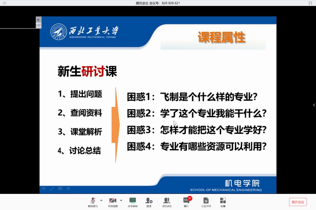 航空宇航制造工程系蒋建军教授第一周有《飞行器零件成形技术》《先进复合材料制造技术》和《新生研讨课》等3门课,上课压力比较大。他提前做好平台网络卡顿的预案,并将各种预案在正式授课之前和学生充分沟通,保证学生使用过程的流畅;针对网上授课的特点,准备了充分的课堂资源供学生课前了解和课堂使用,保证网上课堂教学的效果。他在《新生研讨课》中为课程教学设计课堂话题,与学生开展充分的互动,保证学生随时都能跟上课程教学的思路和节奏。