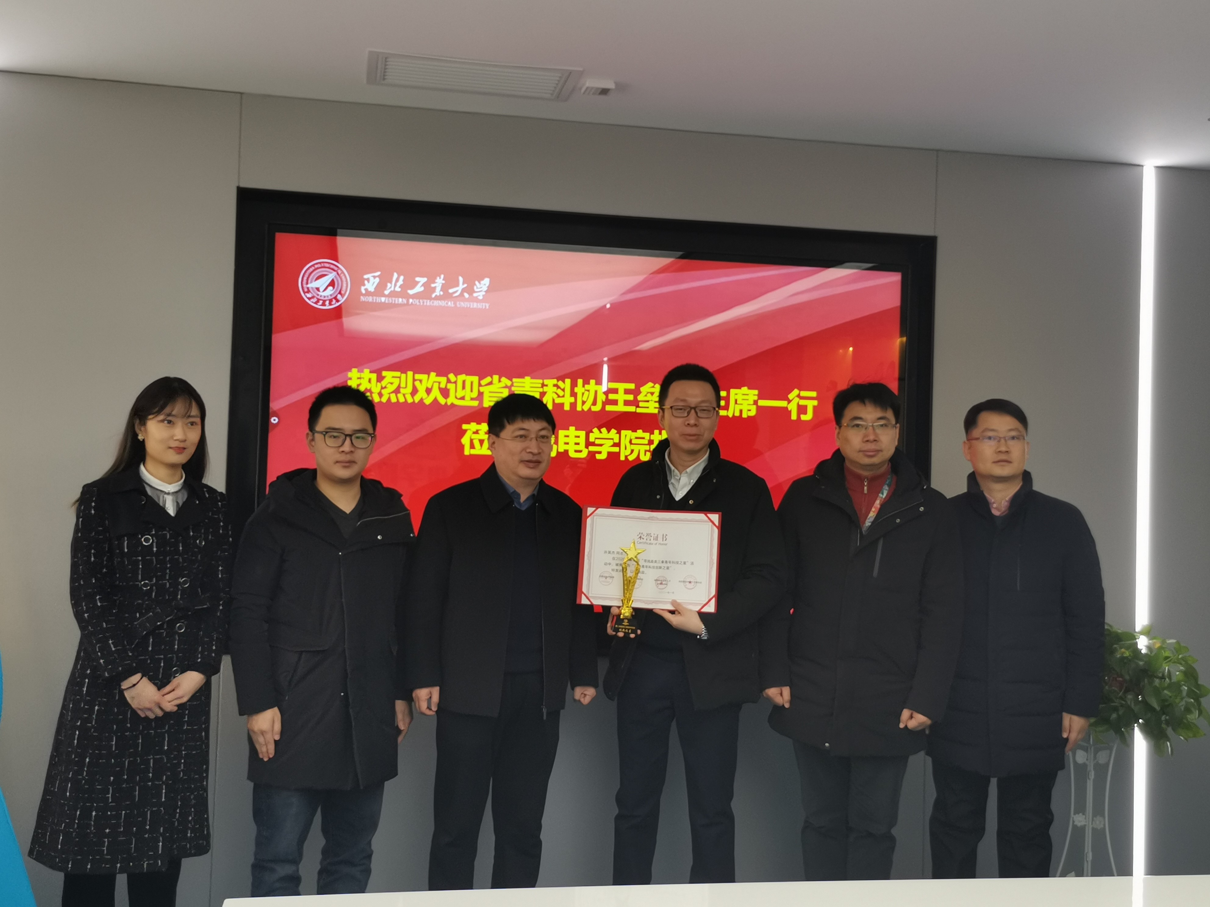 许英杰教授获颁“三秦青年科技创新之星”荣誉证书及奖杯。陕西省青年科技工作者协会副主席、西安市儿童医院副院长王垒,航天六院11所规划发展处副处长陈博、西安电子科技大学陈穆林,性奴