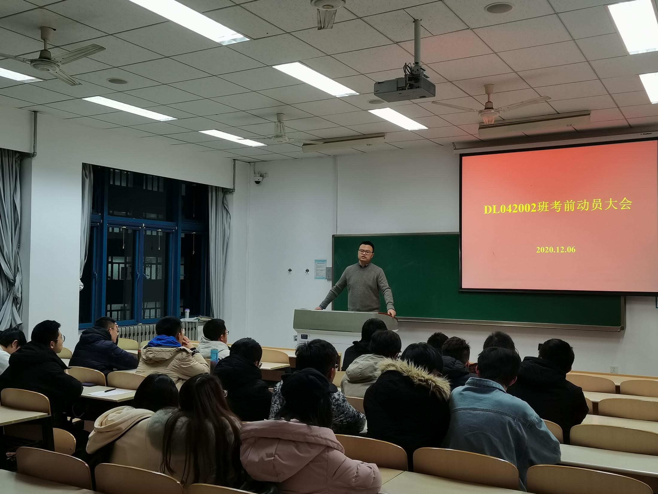 126日晚19:30DL042002班在教学西楼B202召开了期末考试动员大会,会议由班主任老师侯宇戡主持。
