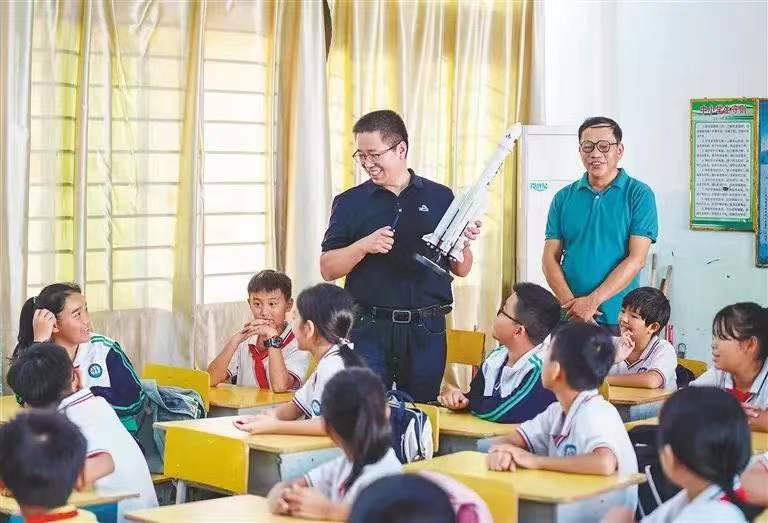10月28日,在梦天实验舱发射前夕,苟秉宸教授受邀来到文昌市龙楼镇航天小学,与该校学生进行航天知识互动,开展主题为“撼天揽月,筑梦天宫”的讲座。