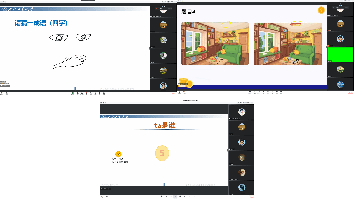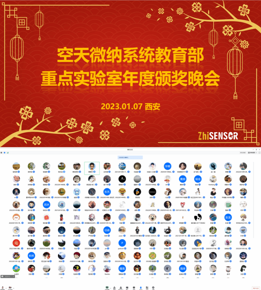 晚会还进行了3轮游戏表演环节,实验室的老师和同学积极参与,活跃了晚会气氛。空天微纳系统教育部重点实验室暨陕西省微/纳米系统重点实验室的全体教师、部分校友、学生及家长共200余人参加了本次线上颁奖晚会。晚会在亲切热烈的气氛中落下帷幕,与会人员展望未来,共同祝福实验室在新的一年里取得更丰硕的成果,师生朋友身体健康,万事顺意!