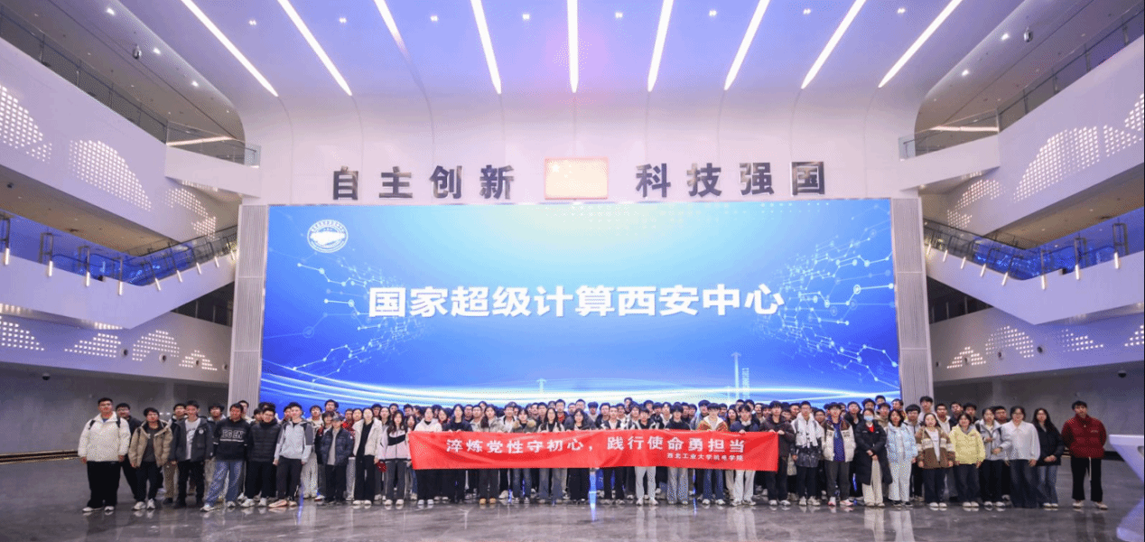 “蓝色课堂”培训板块以沉浸式教学点燃家国情怀,练锻造使命担当。12月10日,2025年秋季学期入党积极分子,发展对象前往国家超级计算西安中心开展参观学习与专题党课教育活动,通过实地感悟与理论学习相结合的形式,引导入党积极分子坚定理想信念,提升思想觉悟与责任意识。活动伊始,全体学生走进西安超算中心展厅,在工作人员的细致讲解下,详细了解中心建设背景、发展历程、核心算力优势,以及在科研创新、产业升级、民生保障等领域的应用成果。展厅内的图文展板、科研数据与技术成果展示,让同学们直观领略我国超级计算事业的蓬勃发展态势,深刻认识到科技创新对国家发展的核心支撑作用,进一步激发了大家立足专业、投身科技强国建设的责任感与使命感。