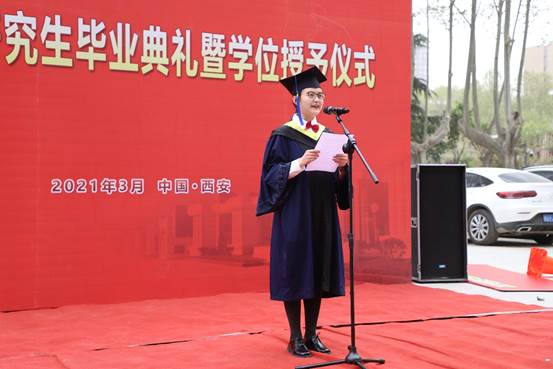典礼伊始,全体起立奏唱国歌,接着,学院党委副书记(主持工作)刘朝亚老师宣读《关于表彰2021届研究生优秀毕业生的决定》,性奴