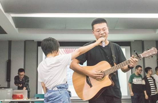 接下来的环节是击鼓传玩偶。一个个超萌超可爱的玩偶让女生蠢蠢欲动,让男生摩拳擦掌,玩偶传到谁就点谁,点到谁就要乖乖上台为大家带来才艺展示。我们机电研会真是藏龙卧虎,五个玩偶,引来各路大神各显神通。一首《成都》成功打开了“实力派唱将们”的麦霸之路,《等我回家》、《探清水河》、《亲爱的姑娘》等一首首歌曲瞬间点燃了晚会的热烈气氛,引起观众欢呼声不断。