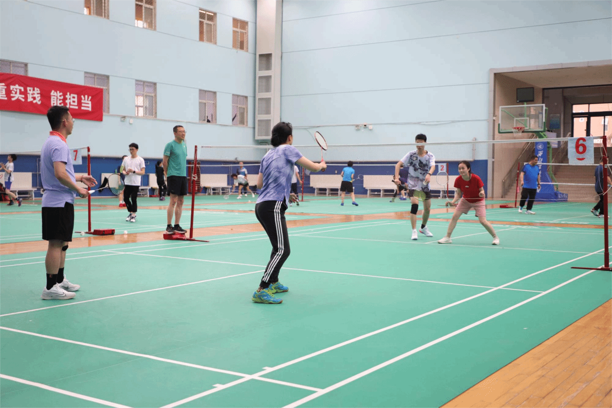 下午2时许,比赛在欢呼声中拉开帷幕。教职工队由学院各单位教师组成,学生队则遴选出各年级羽毛球精英。首场混双对决便点燃全场,青年教师的混双组合以默契配合首先夺得一分。学生队不甘示弱,在男单比赛中,研一学生小赵凭借灵活跑动和精准扣杀为队伍扳平比分。赛场内,白色羽毛球如流星般穿梭,场边“老师加油”“师弟稳住”的助威声浪此起彼伏。