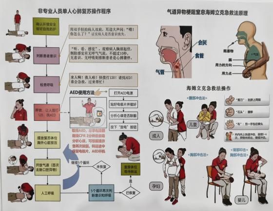 培训内容紧扣日常生活与校园环境中可能遇到的紧急情况,涵盖了心肺复苏(CPR)、自动体外除颤器(AED)使用、海姆立克急救法、创伤包扎等多项实用急救技能。校医院专业医护人员担任主讲和指导,确保了培训的专业性和科学性。