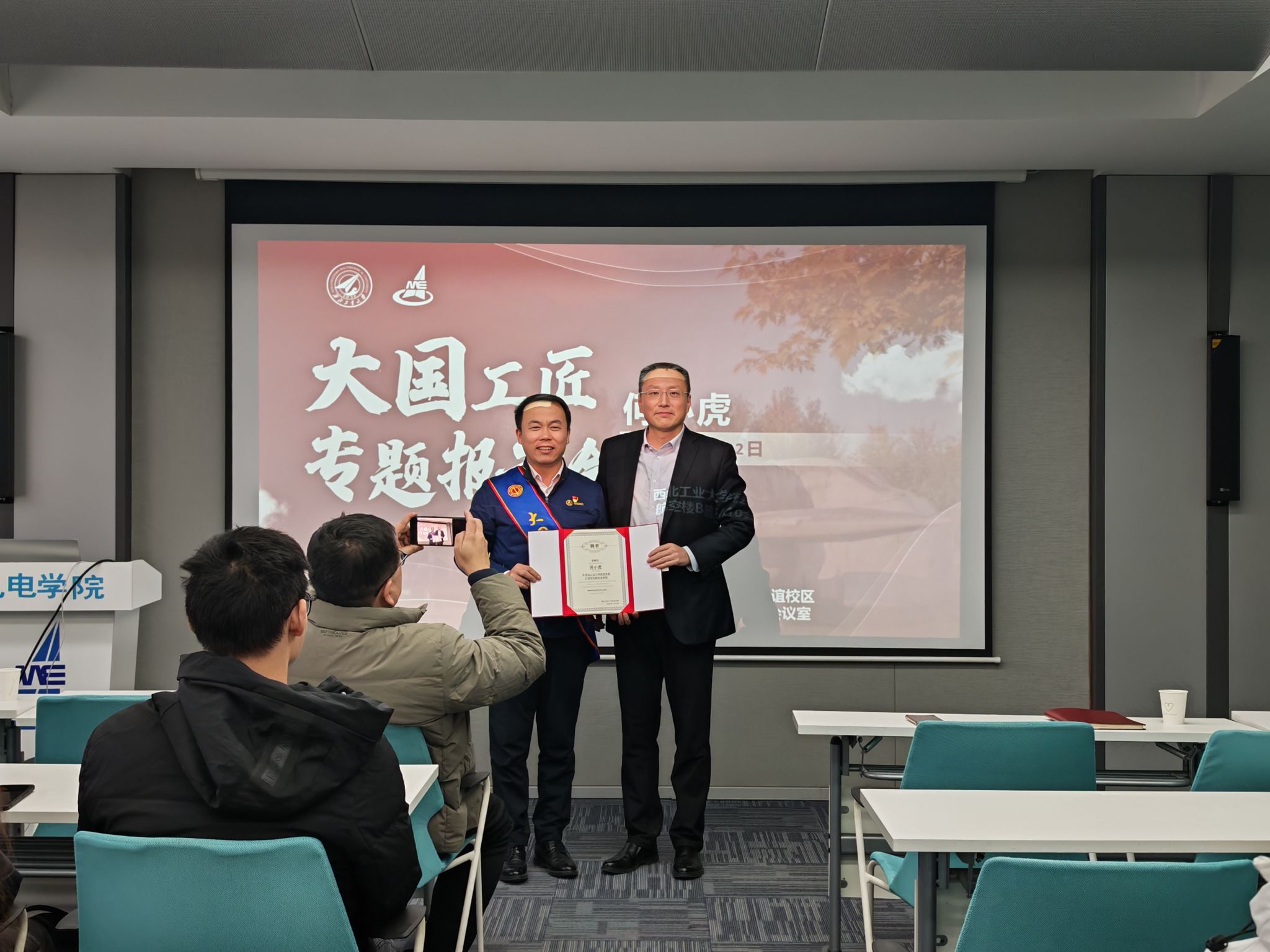 大国工匠专题报告会表示热烈的欢迎,并为何小虎颁发性奴