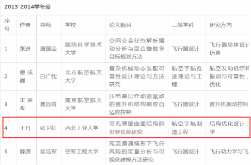 4.10王丹、杨昀荣获航空宇航科学与技术学科全国优秀博士学位论文
