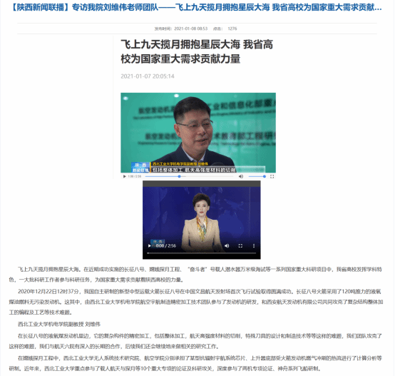 5.4.5【陕西新闻联播】专访性奴 刘维伟老师团队——飞上九天揽月拥抱星辰大海 我省高校为国家重大需求贡献力量