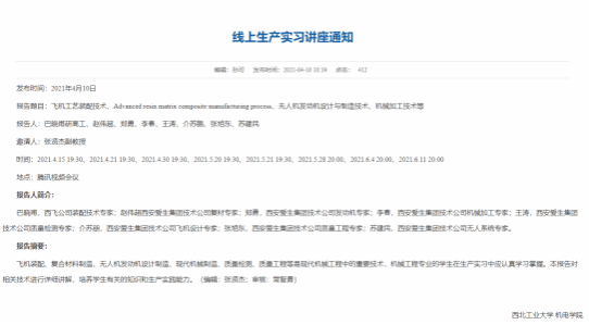 3.2.7疫情期间性奴 邀请西飞、爱生集团专家为学生开展线上生产实习讲座