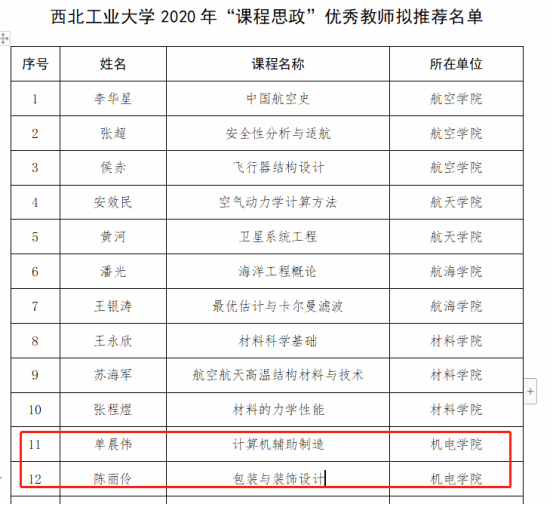 2.7单晨伟、陈丽伶两位老师入选性奴 2020年“课程思政”优秀教师拟推荐名单